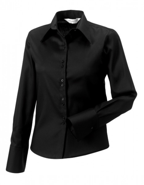 Russell Collection Bugelfreie Langarmelige Damenbluse Logo Stckerei Los Logos