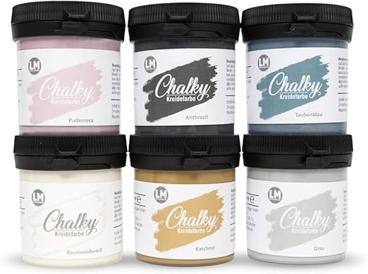 Lm Kreativ Chalky Kreidefarbe 6 X 80ml Stadtgesprach Finish Kreide Farbe Fur Einen Vintage Shabby Chic Look Die Kreidefarben Kalkfarbe Sind Auch Als Holzfarbe Verwendbar Trocken Matt Auf Amazon De Kuche Haushalt