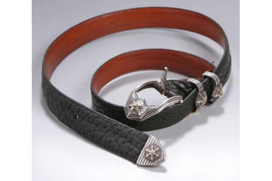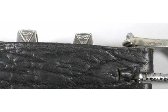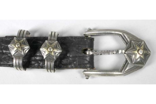 Designer Gurtel W A Elfers Design Sterling Silber Beschlage Schwarzes Gepragtesleder L 112