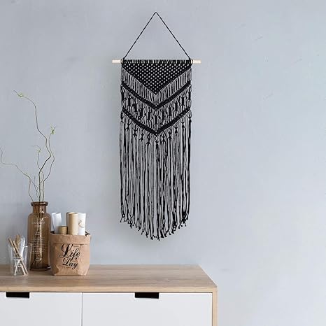 Koitoy Makramee Wandbehang Boho Wanddeko Wandteppiche Aus Baumwolle Handgefertiges Dekorativer Schwarz Fur Wohnzimmer Dekoration 40 76cm Black Amazon De Kuche Haushalt