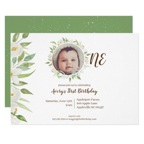 Der Elegante 1 Geburtstag Des Weissen U Grunen Einladung Meine Einladungskarten De