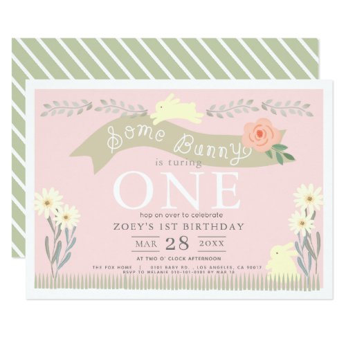 Einige Bunny Pastel Pink Girl 1 Geburtstag Einladung Meine Einladungskarten De