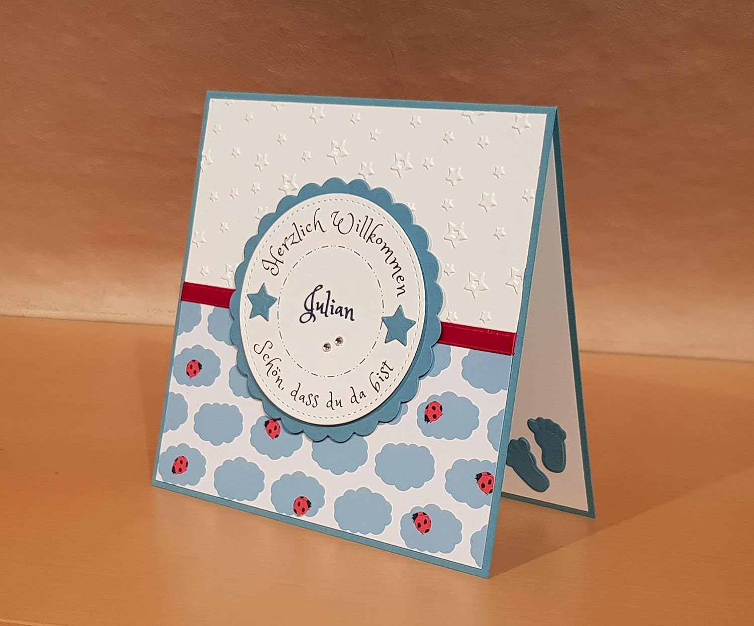 Vor ein paar en habe ich eine Anfrage für eine Danksagungskarte zur Geburt erhalten Ich habe auch das Foto gemailt bekommen, was in die Karte sollte Die Auftragsstellerin war sich aber nicht ganz sicher bei der Fotoauswahl und schickte mir noch zwei weitere Bilder Ich fand alle Bilder sehr schön und somit. Ein kleiner Junge, oh wie wunderbar ich freue mich sehr mit dem Elternpaar Eurem Nachwuchs wünsche ich alles Gute, viel Freude im Leben und vor allem Gesundheit Euch Zweien wünsche ich Kraft, Ausdauer und eine Engelsgeduld Gemeinsam werdet Ihr alle Hindernisse aus dem Weg räumen Herzliche Glückwünsche zur Geburt Eures Stammhalters!. Auftrag Bastel zur Geburt eine Karte und Deko Das Baby ist ein Junge Das habe ich schnell und einfach gelöst und die Kamara mitlaufen lassen nun haben w.