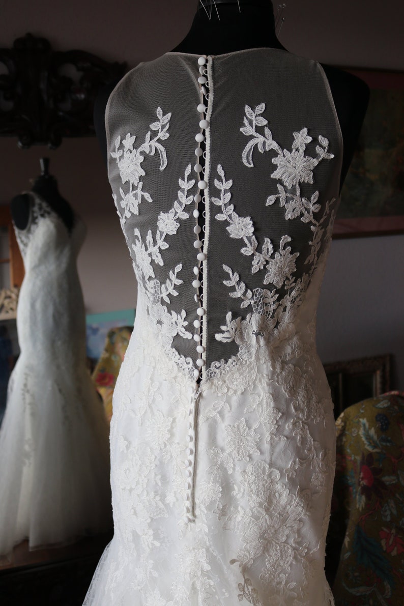 Lace Fit N Flare Wedding Dress Sheer Back Bridal Gown Mermaid Etsy