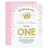 Rosa Vintager 1 Geburtstag Prinzessin Twins Einladung Zazzle De