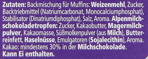 Our favorite it adding about 1 cup smashed banana and 1/2 cup chopped walnuts added cinnamon and vanilla I spray my muffin tins with Pam instead of using the liners. MilkaSchokotropfen für das Topping;. The muffin cups are included in the package which makes this a recipe which is quick and easy to prepare BASIC INSTRUCTIONS Cookie sheet, 1/3cup milk, 2 eggs, 1/2 cup canola oil adjust oven rack to center position;.