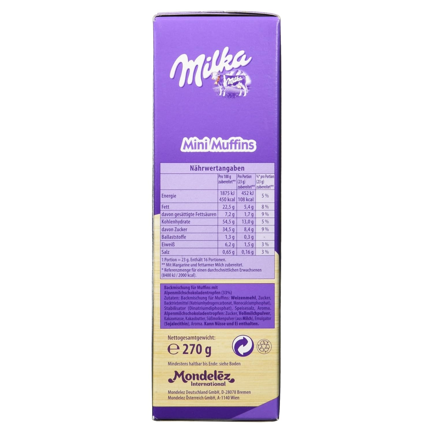 MilkaSchokoCookies MiniErdbeerCupcakes MischBrot ohne Sauerteig MohnJoghurtKuchen MohnJoghurtkuchen am Blech MohnSchokokuchen (Restekuchen) MohnstrudelKranz Muffins pikant Müsli selbstgemacht Müsli Apfel/Zimt Müsliriegel M&M Geburtstagskuchen N) Naked Cake mit Früchten NikolausLebkuchen Number Cake zum 3 Geburtstag NussBananen. Milka Mini Muffins Backmischung, 16 Stück, 270 g von Milka 3,0 von 5 Sternen 2 Sternebewertungen Preis 12,12 € (44,. Milka Mini Muffins 270g (DE) skladem 159 Kč 138 Kč bez DPH Přidat do košíku Kompletní specifikace Milka sypká směs na pečení pro přípravu výborných mini muffinů s kousky slavné čokolády Složení Směs na muffiny pšeničná mouka, cukr, kypřící činidla (hydrogenuhličitan draselný, dihydrogenfosforečnan vápenatý.