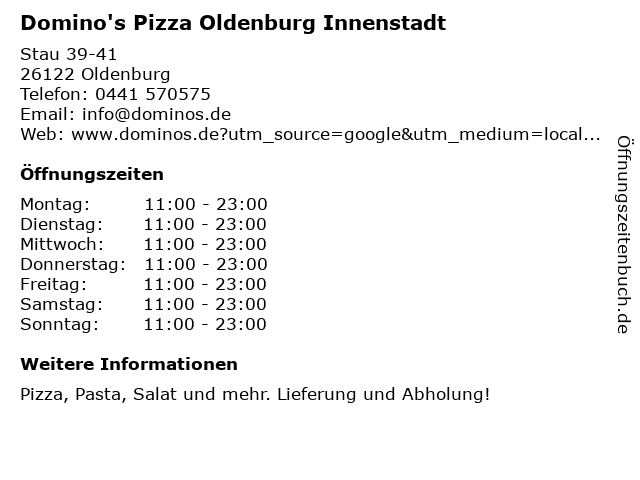 ᐅ Offnungszeiten Domino S Pizza Oldenburg Stau 39 41 In Oldenburg