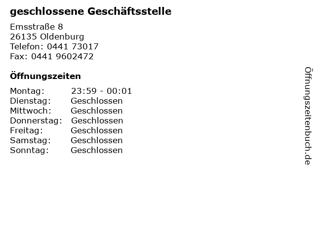 Offnungszeiten 8 Emsstrasse Tel 49 441