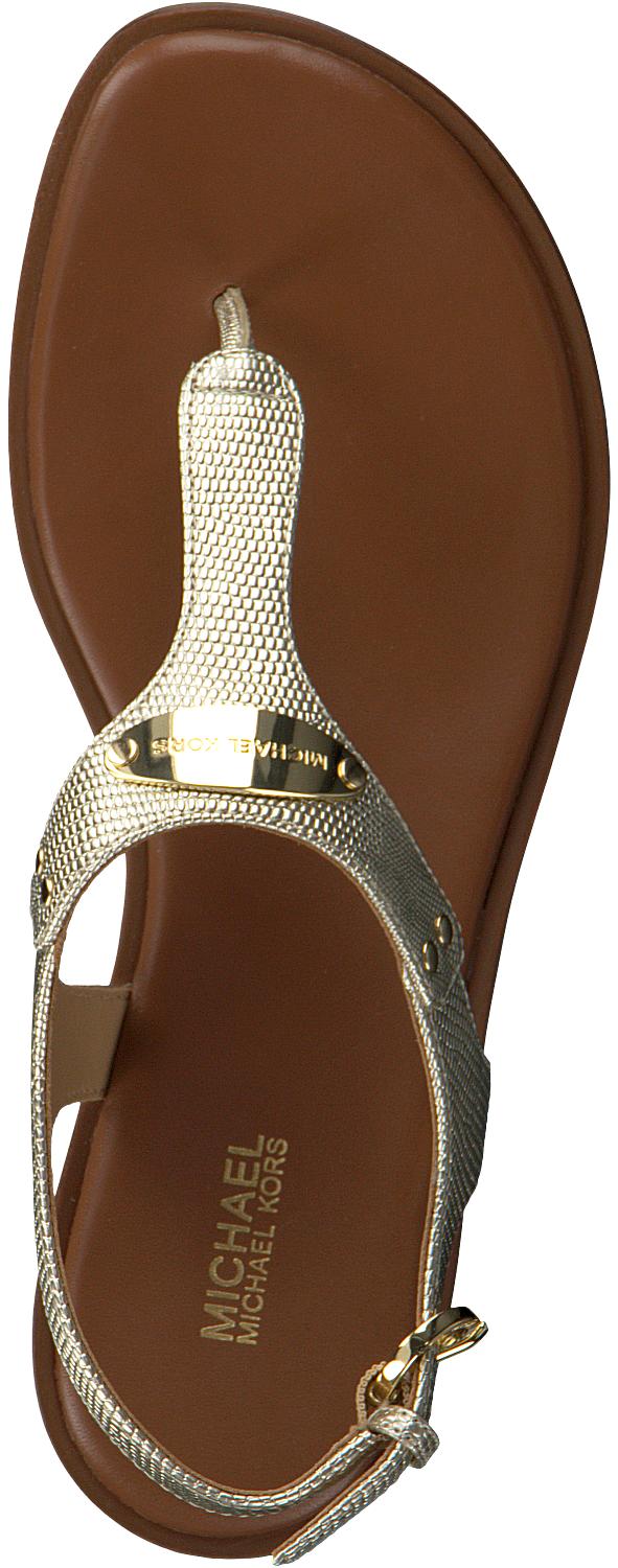 Michael Kors Goldfarbene Sandalen Mk Plate Thong In Mettallic Lyst