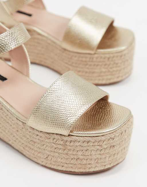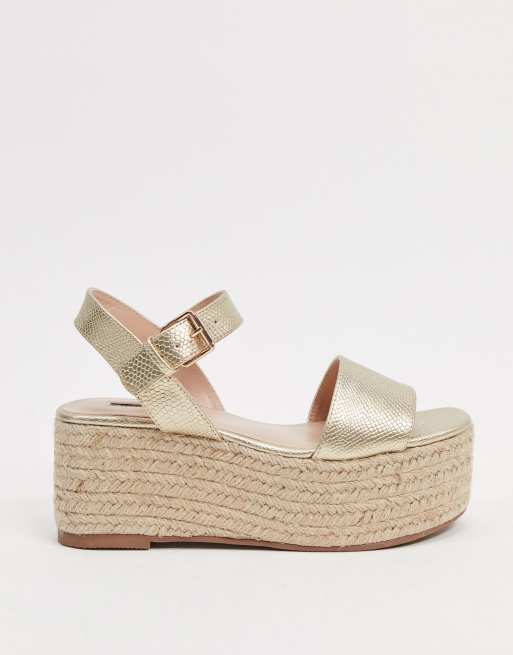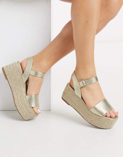 Miss Selfridge Goldfarbene Sandalen Mit Plateausohle Asos