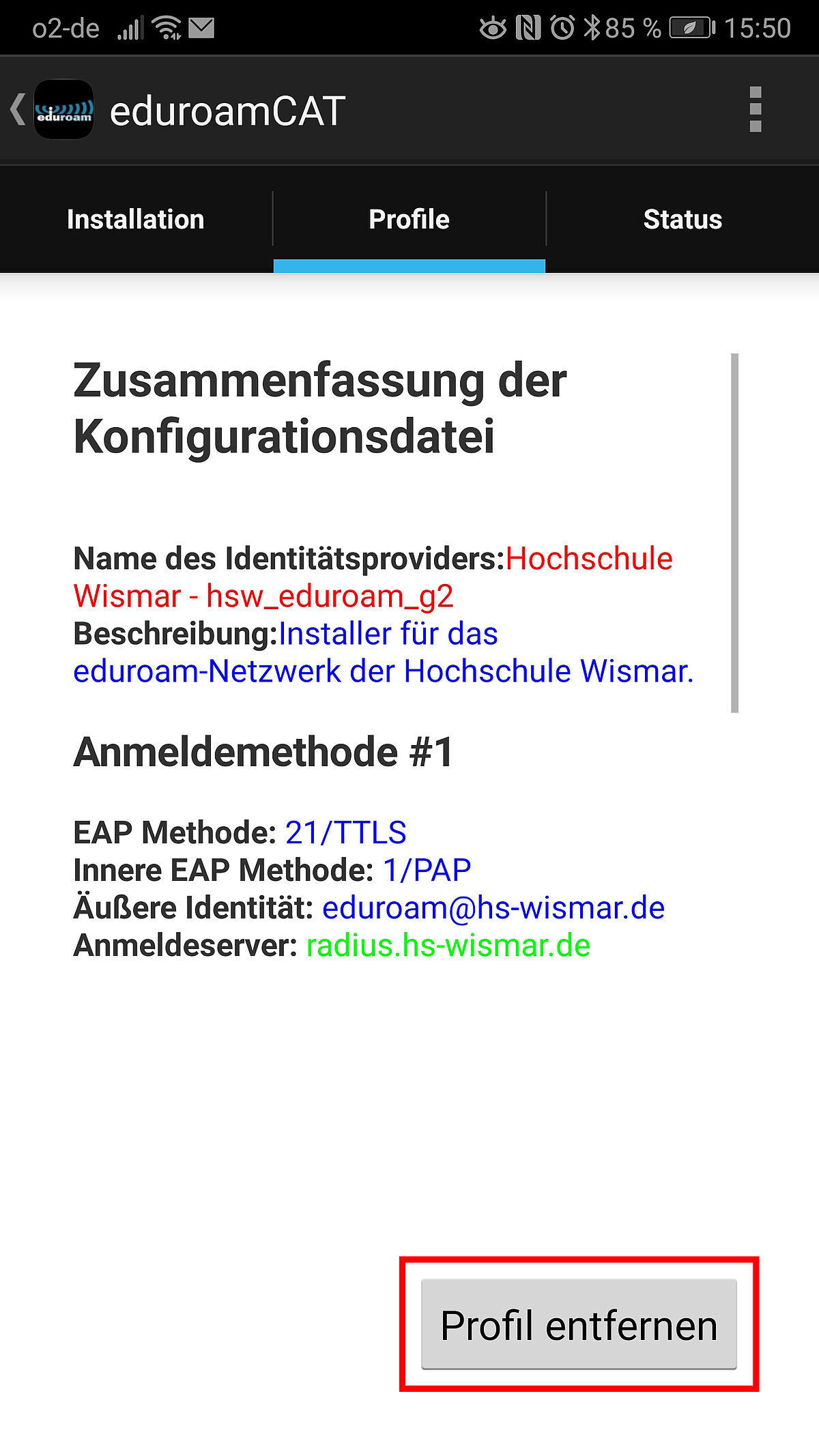 Eduroam Installation Hochschule Wismar