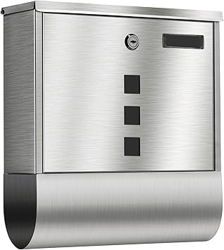 MLabel Briefkasten Trier Edelstahl Wandbriefbox gebürstet Designer Briefkasten aus beschichtetem Stahl in zeitlos schicker Optik Der Briefkasten verfügt über einen großen Briefschlitz, ein Namensschildfenster, ist abschließbar und wird mit zwei Schlüsseln geliefert. Maxstore STILISTA Briefkasten V2A Edelstahl Standbriefkasten mit Zeitungsfach, Postkasten unterschiedliche Designs, Höhe 1144cm, Schwere Qualität (68kg) Abmessungen des Standbriefkastens Maße B 35 x H 44 x T 11 cm Gesamthöhe mit Beinen 1 cm Größe der Öffnung L 28 x B 2,5 cm.