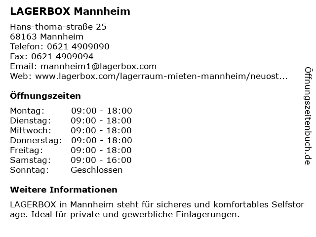 ᐅ Offnungszeiten Lagerbox Mannheim Hans Thoma Strasse 25 In Mannheim