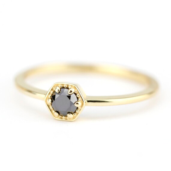 Sechseck Ring Schwarzer Diamant Ring Verlobungsring Etsy