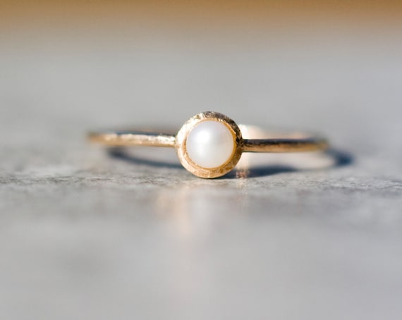 Perlenring Solide 14k Goldschmuck Perle Verlobungsring Etsy