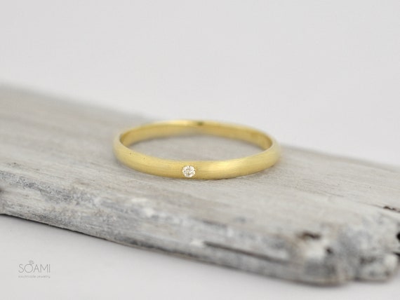 Glatt Matt Gold Diamant Ring Gold 585 Etsy