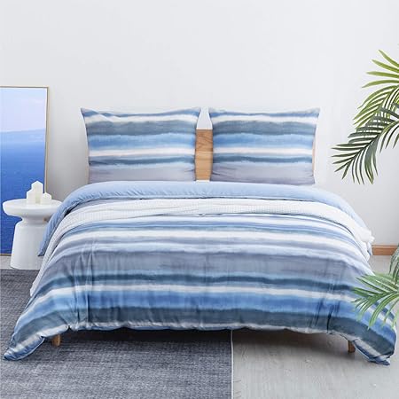 Bedsure Bettwasche 155x2 Cm Blau Bettbezug Set Mit Allmahlich Streifen Muster 3 Teilig Microfaser Bettwasche Warme Atmungsaktive Bettbezuge Mit Reissverschluss Und 2 Mal 80x80cm Kissenbezug Amazon De Kuche Haushalt