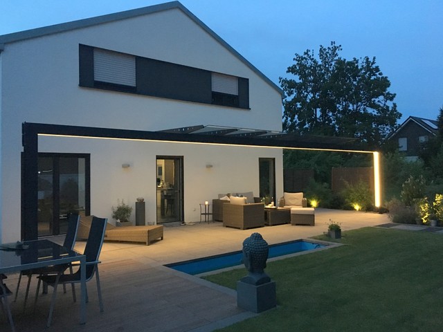 Ideen terrassenuberdachung modern. Eine Terrassenüberdachung aus Glas wird meist für Terrassen von Häusern in moderner Architektur gewählt, da sie zeitlos, elegant und schick aussehen In Verbindung mit Holz sieht das Glas sehr hochwertig und edel aus, in Verbindung mit Aluminium hingegen modern und minimalistisch. 1506 Erkunde Julias Pinnwand „Moderne pergola“ auf Weitere Ideen zu pergola, terrassenüberdachung, überdachung terrasse. 01 Terrassenüberdachung mit Flach bzw Pultdach Mit einem reduzierten Stil und klarem Design verspricht das Flachdach lange modern zu bleiben, ohne der kurzweiligen Mode zu entsprechen In Kombination mit der passenden Verglasung ist diese Überdachung ein hochwertiger und zeitloser Blickfang in Ihrem Garten.