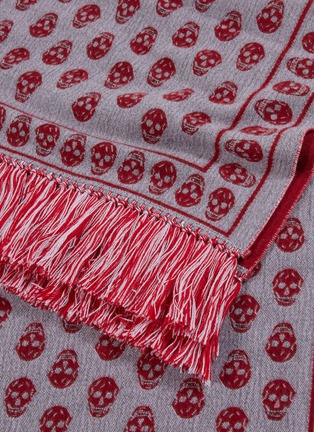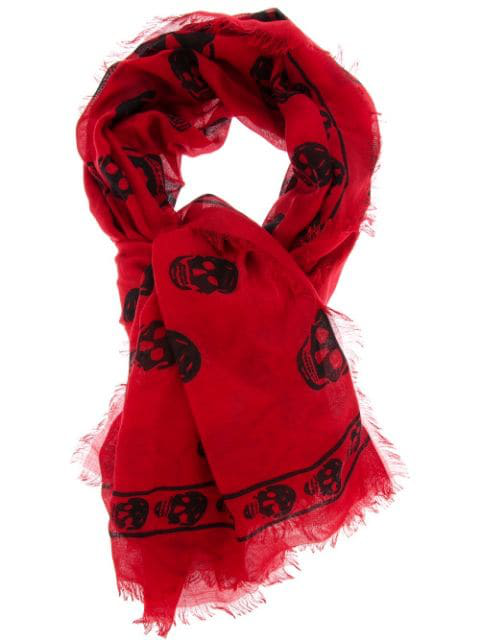 Free shipping and returns on Alexander McQueen Skull Print Modal Scarf at Nordstromcom Signature Alexander McQueen skull imagery brings Gothicchic style to a tissueweight modal scarf crafted in Italy. Reversible wool jacquard skull scarf in black and red with fringed edges and an Alexander McQueen signature. Black Grey White Offwhite Beige Brown Metallic Purple Blue Green Yellow Orange Pink Red Show Material 100% Cashmere Cashmere Blend Chambray Chiffon 100% Cotton Cotton Blend Faux Fur Faux Shearling Flannel Fleece Fur (Genuine) Women's Alexander McQueen Scarves & Wraps Pick Up Set location off 15 items.