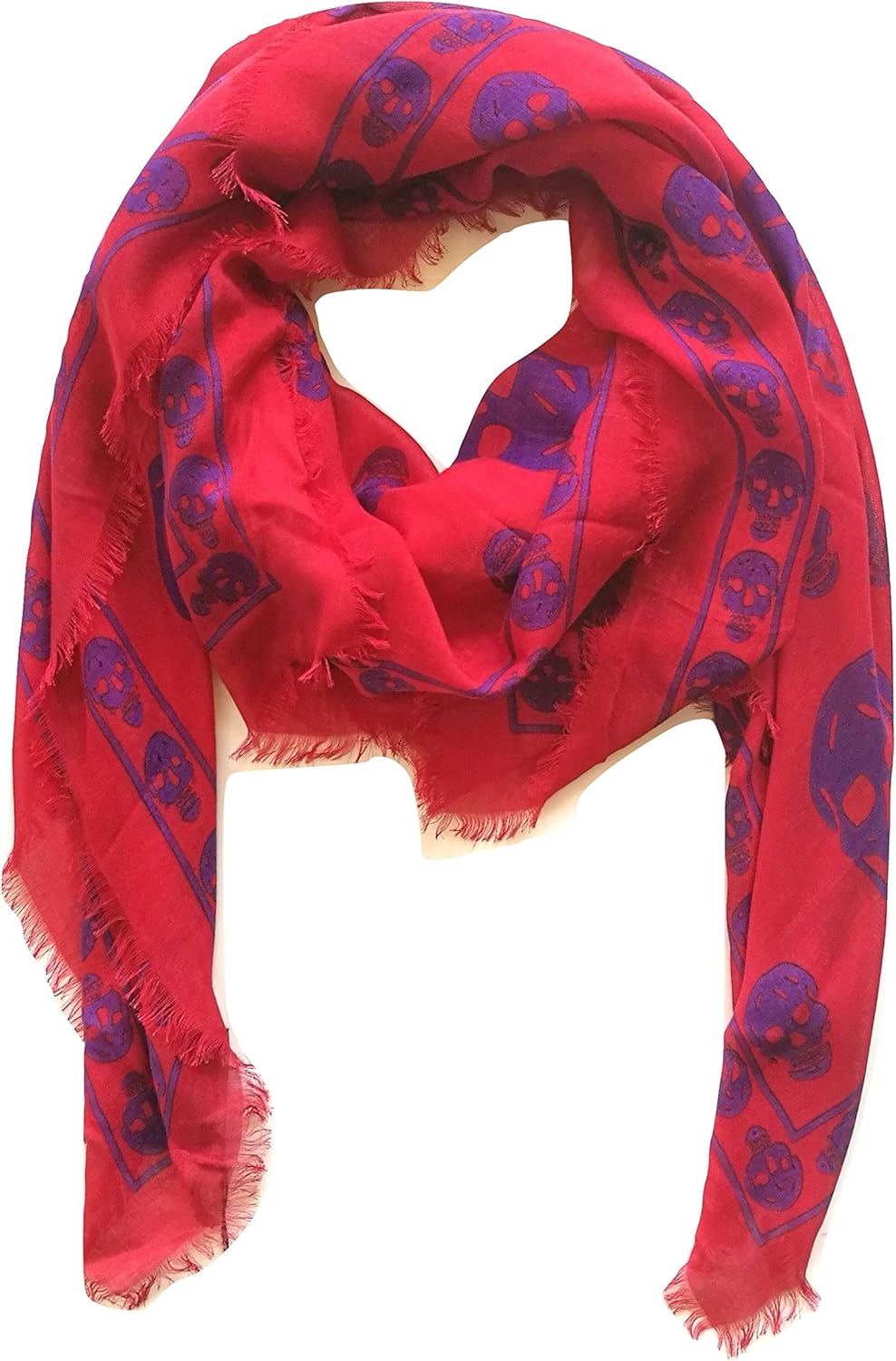 Alexander Mcqueen Scarf Red Signature Skull Print Extra Large Square Como Milano