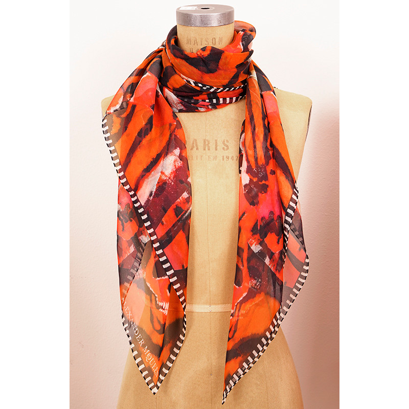Shop Alexander Mcqueen Check Pattern Scarf In Red from 300 stores, starting at $265 Similar ones also available On SALE now!. Shop our amazing collection of Alexander McQueen Scarves at Saks Fifth Avenue Get upto 70% off with free and fast shipping!. Beautiful coral scarf, silk Unique design New and never worn Labels completely present.