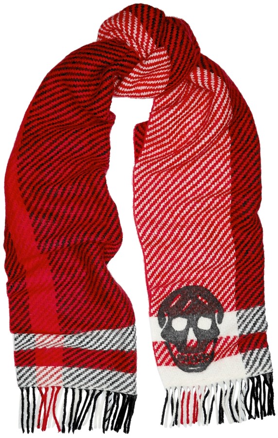 Yesterday, she recycled Alexander McQueen coat to board train at Euston Teamed garment with Accessorize earrings and a tartan scarf first worn in 16 By Harriet Johnston For Mailonline. Alexander McQueen is renowned for being the champion of eyepopping theatrics, toughening up everyday accessories with gothic romanticism Crafted from a woolsilk blend, this red plaid scarf features frayed edges, a n embroidered logo and a long length. Alexander McQueen's scarf is jacquardknitted with monochromatic checks on one side and the label's signature skulls interspersed with contrasting hearts on the red reverse It's been spun in Italy from cozy wool and has fringed edges The enveloping shape will keep you really warm.