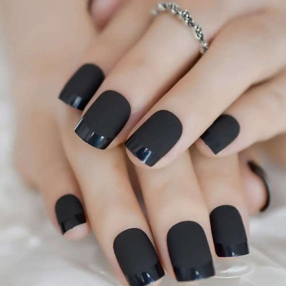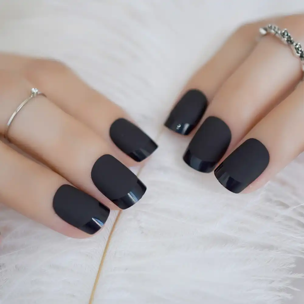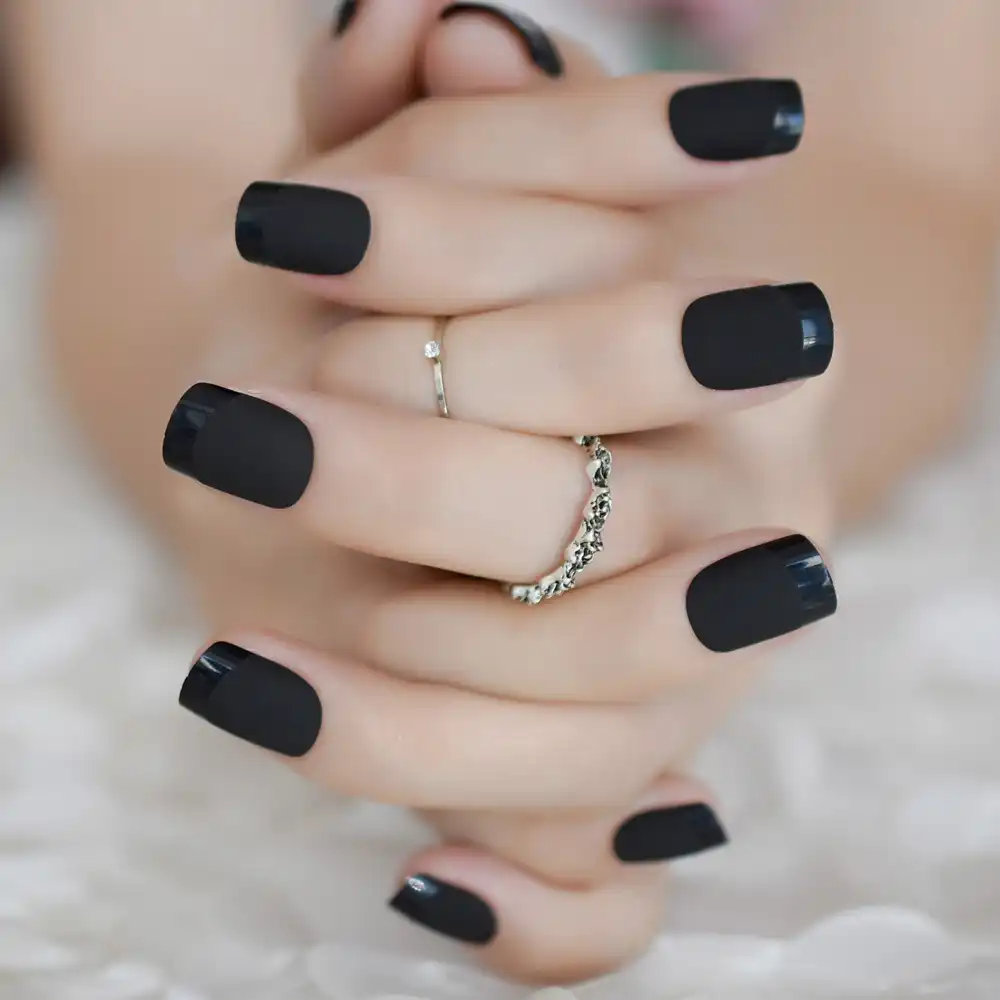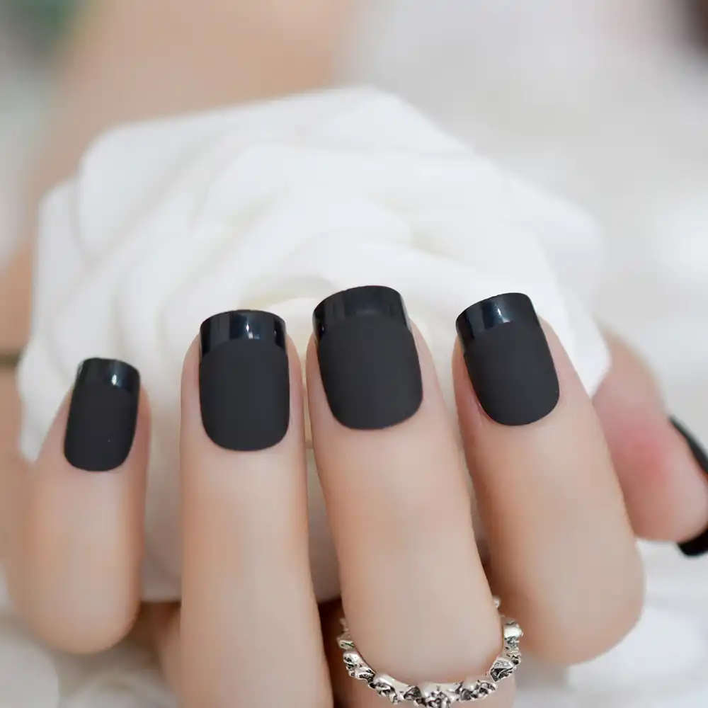 French Square Carbon Black Nails Matte Gel Layered Nails Design Glossy Stylish False Nails With Sticker 24 False Nails Aliexpress