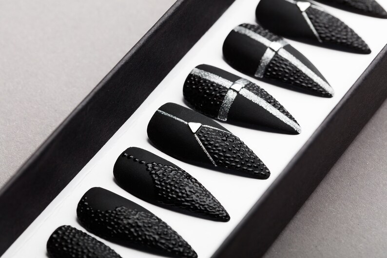 Black Drops Press On Nails Black Nails Handpainted Nail Etsy
