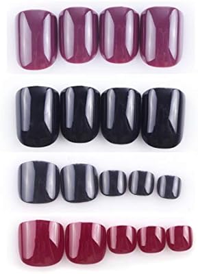Siusio 96 Pcs Colorful Fake Nails 4 Pack Coal Carbon Black Plum Crimson Fuchsia Red Full Cover Square Uv Coat Artificial Acrylic Toe Nails Black Rose No Glue Included Buy Online At