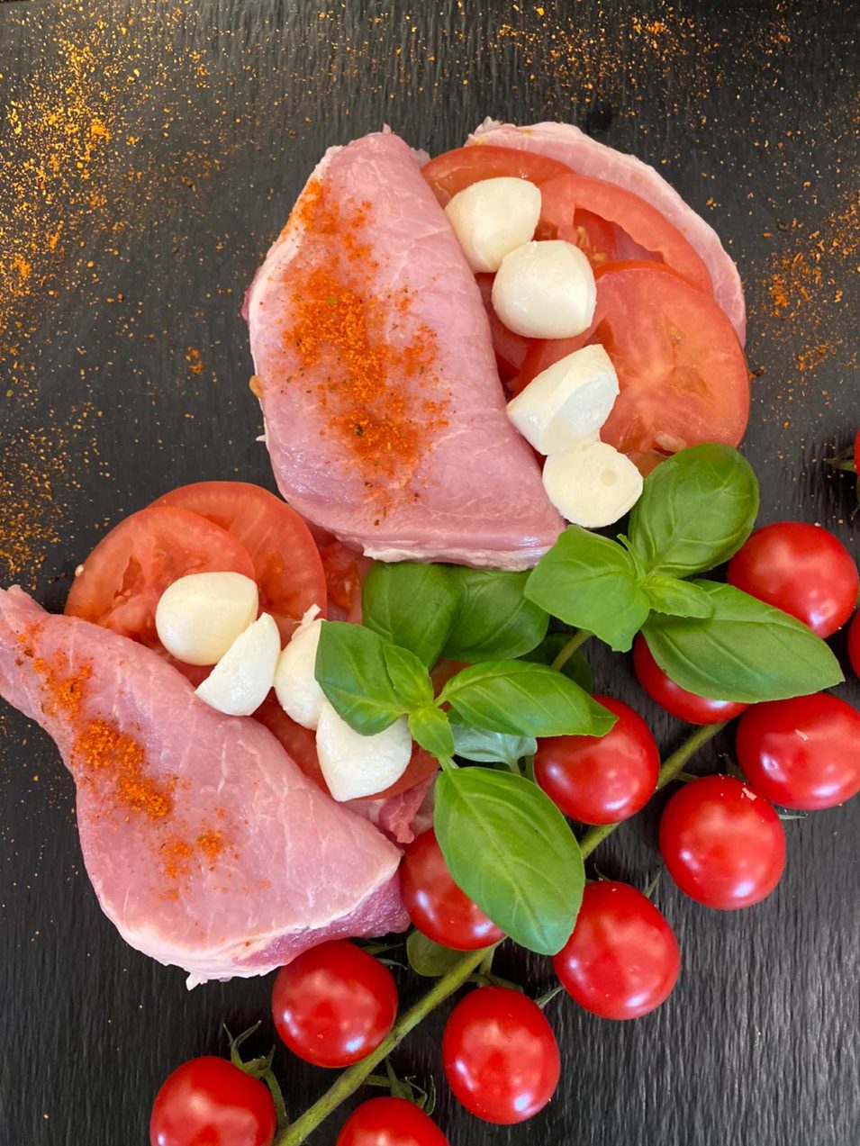 Tomaten und Mozzarella in Scheiben schneiden und in die Taschen der Schnitzel füllen Mit Salz, Pfeffer und den Kräutern würzen Taschen mit Holzspießchen zustecken Koteletts von außen salzen und pfeffern In Öl von beid. 1 Mozzarella und Tomaten in feine Scheiben schneiden und entsprechend auf einem grossen Teller anrichten 2 Salatsauce mit KNORR Flocken Chili mit geräuchertem Paprika, Balsamico, Olivenöl und Salz herstellen 3 Salatsauce über die TomatenMozzarellascheiben träufeln Salatsauce über die TomatenMozzarellascheiben träufeln. Jetzt entdecken und ausprobieren!.
