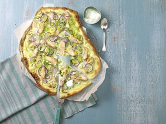 Flammkuchen mit Lauch und Lachs Über 284 Bewertungen und für super befunden Mit Portionsrechner Kochbuch VideoTipps!.
