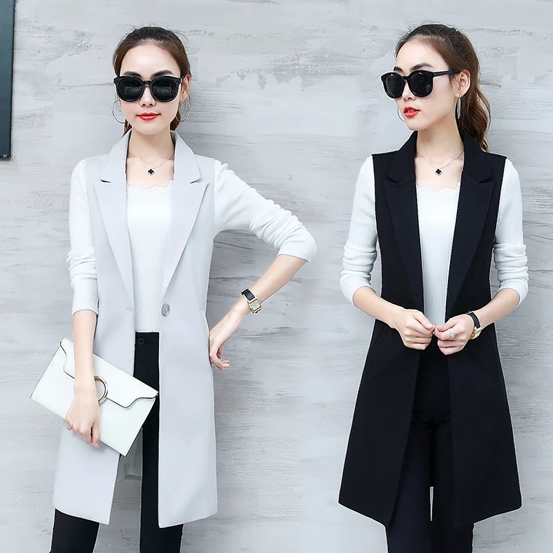 Women S Jacket Sleeveless Long Cardigan Blaser Feminino Work Suit Vest Blazer Solid Color Female Women Basic Coats Outwear Vests Waistcoats Aliexpress