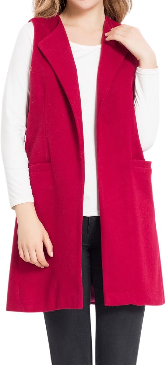 Cekaso Womens Blazer Vest Slim Fit Open Front Lapel Longline Solid Suit Vest Coat Tops Tees Blouses Clothing