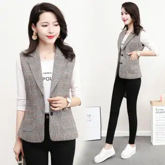 Spring And Autumn Suit Plaid Women S Waistcoat Short New Style Korean Style Leisure Sleeveless Vest Waistcoat Suit Vest Lazada Singapore