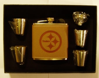 Pittsburgh Steelers engraved leather 6 oz stainless steel flask with 4 stainless steel shot glasses and a funnel in a black presentation box giftsforsportsfans From shop giftsforsportsfans 5 out of 5 stars. All of our awesome Pittsburgh Steeler gifts!. Looking for the ideal Cool Steelers Gifts?.