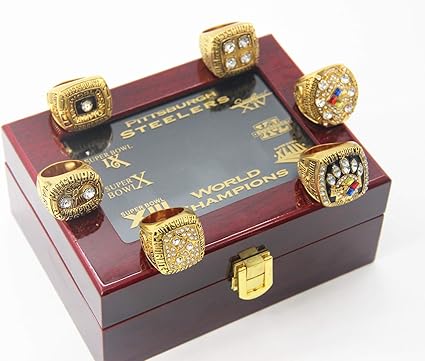 Amazon Com Xiakoman Pittsburgh 6 Time Steelers Superbowl Champions Rings Set With Box Christmas Ornaments Gifts For Men Women Kids Boys Championship Super Bowl Ring Sports Outdoors