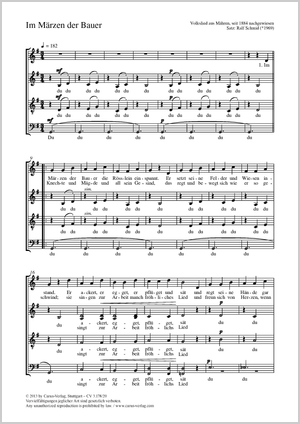 Im Märzen der Bauer;. 1m Märzen der Bauer (Musik Volkslied) (Text Walter Hensel?) 1m Märzen der Bauer die Rößlein einspannt Er setzt seine Felder und Wiesen in Stand Er pflüget den Boden, er egget und sät Und rührt seine Hände früh morgens und spät Die Bäu 'rin, die Mägde sie dürfen nicht ruh 'n Sie haben im Haus und im Garten zu tun Sie graben. Im Märzen der Bauer Noten Download PDF Author Peter Kovacs Subject Im Märzen der Bauer Noten Liedtext Keywords Im Märzen der Bauer, Noten,Download PDF, Partitur Created Date 1/21/18 PM.