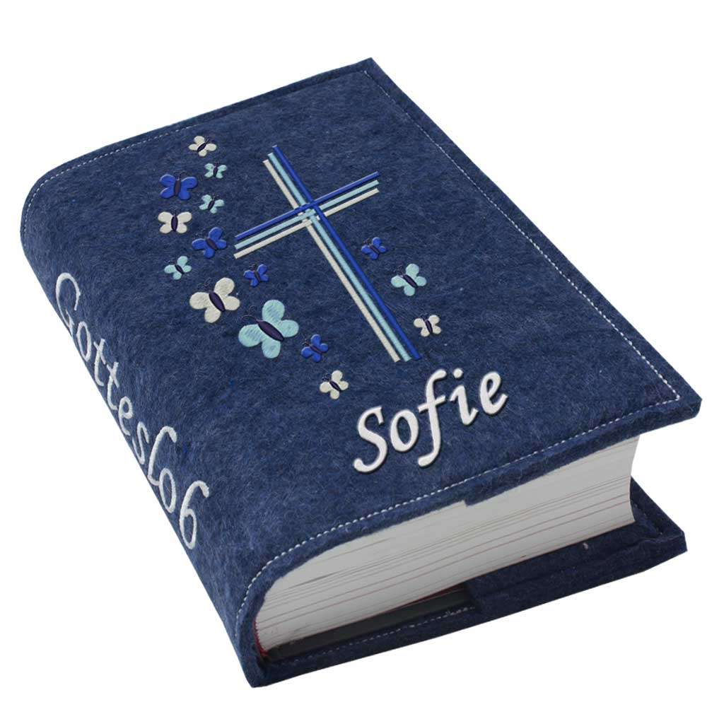 Gotteslobhulle Grossdruck Kreuz Schmetterlinge Blau Filz Mit Namen Bestickt Sl Store