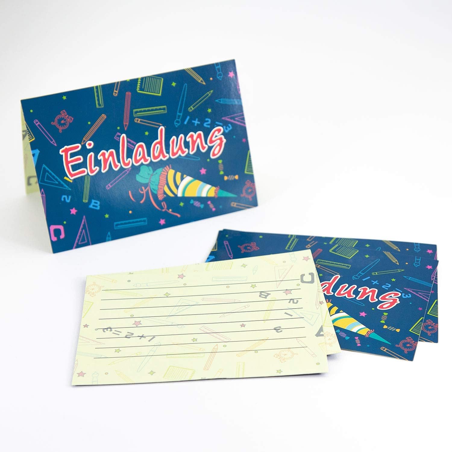 Sophies Kartenwelt 12 Einladungskarten Zur Einschulung Schulanfang Einladungen Madchen Jungen Schule Tafel Schuleinfuhrung Schuleingang Amazon De Spielzeug