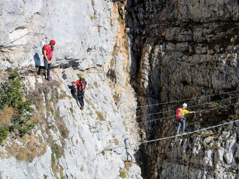 Die Via Ferrata delle Aquile, oder AdlerKlettersteig, ist ein relativ neuer und sehr luftiger Klettersteig, der die Felswand der Paganella hoch ober dem Etschtal im Trentino quert Er ist selten schwieriger als C, verläuft aber durchaus exponiert die steil abfallende Südwand der Paganella. Der Klettersteig "via Ferrata Aletsch" beim Stausee Gibidum medium 3,4 km 4,0 h Climbing Garden For practised and practicing If you want to take on a challenge in nature in the Aletsch Arena, the Bettmeralp Adler and Fieschertal climbing gardens are the right place for you The different routes in the natural rocks have different degrees. An Luft unter den Füßen mangelt es bei diesem neuen Klettersteig bestimmt nicht Der moderne Sportklettersteig führt ausgesetzt entlang der mächtigen Felswand der La Paganella Selbst erfahrene Klettersteiggeher werden zugeben, dass sie noch selten so tiefe Abgründe bewältigt haben.