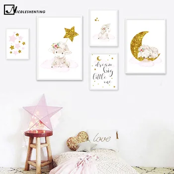 Tier Schafe Lampe Wand Poster Kindergarten Zitate Kunst Print Mond Sterne Malerei Nordic Kinder Dekoration Bild Baby Kind Room Decor Leather Bag