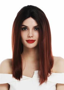 Perucke Damen Schulterlang Rot Braun Mittelscheitel Pony Glatt Kostume Verkleidungen Accessoires Perucken Barte