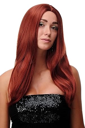 Wig Me Up Damenperucke Wig Rot Dunkel Kupferrot Lang Glatt Mittelscheitel Ca 60 Cm Sa 151 135 Amazon De Beauty