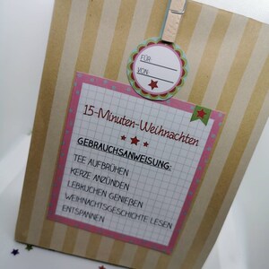Um 15 Minuten Weihnachten in der Tüte zu verschenken, benötigst Du nur wenige Zutaten zum Basteln Hier findest Du kostenlose Vorlagen und Links, sowie eine. 15 Minuten Weihnachten in der Tüte Holt euch 15 Minuten Weihnachten nach Hause oder beschenkt eure liebsten mit dieser Kleinigkeit Einfach mal eine Freude machen!. Wer hätte das verdient, mal eine kurzeAuszeit zu genießen?.