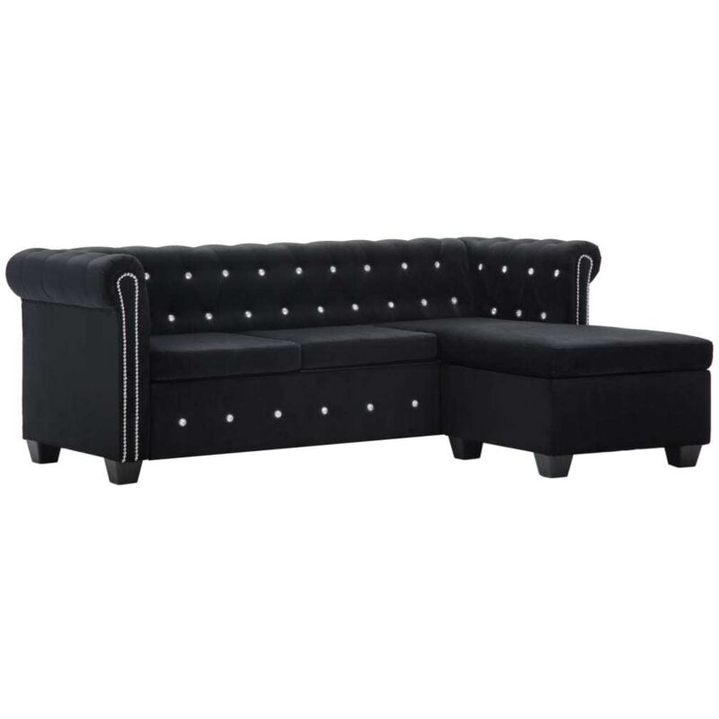 Chesterfield Sofa L Formig Samtbezug 199x142x72 Cm Schwarz