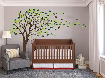 Kiskistonite Grossen Baum Blowing In The Wind Baum Wandaufkleber Wandtattoo Vinyl Art Kinder Madchen Jungen Teenager Kinderzimmer Tapete Wandmalerei Sticker Wandsticker Kinderzimmer Decor Weiss Dunkelbraun Amazon De Kuche Haushalt