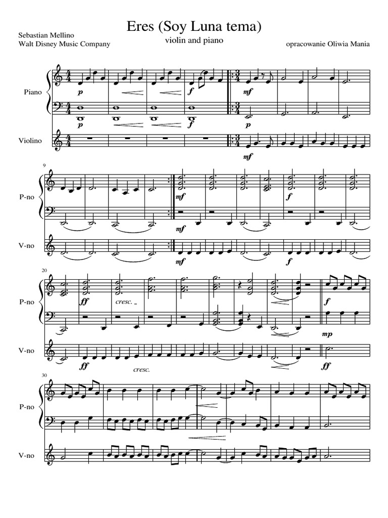 Eres Soy Luna Tema Sheet Music For Piano Violin Solo Musescore Com