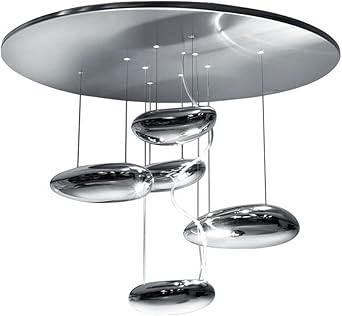 Artemide Mercury Soffitto Inox Deckenleuchte 2385, € Artemide Mercury Mini Soffitto Inox Deckenleuchte 1060, €. Mercury Mini LED Hängeleuchte von Artemide Die Pendelleuchte Mercury Mini LED gehört zu einer speziellen Familie von Artemide Die Leuchte hat eine Deckenrosette, die eine runde und dünne, aus Edelstahl gefertigte Platte mit einem Ø von 70cm trägt Von der Platte hängen 5 steinähnliche Körper. Artemide Mercury is more than a lighting fixture, it is in fact a piece of art, an original sculpture as a full protagonist in the room The lighting element of Artemide Mercury is a disc of diecast aluminium The reflective units are made of injectionmoulded thermoplastic material with metallic finish.