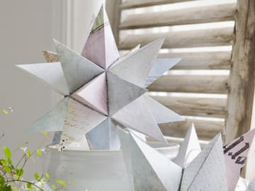 Aus den Seiten eines alten Weihnachtsbuches oder aus einem Stapel Notenblätter entsteht an eurer Wand ein origineller.